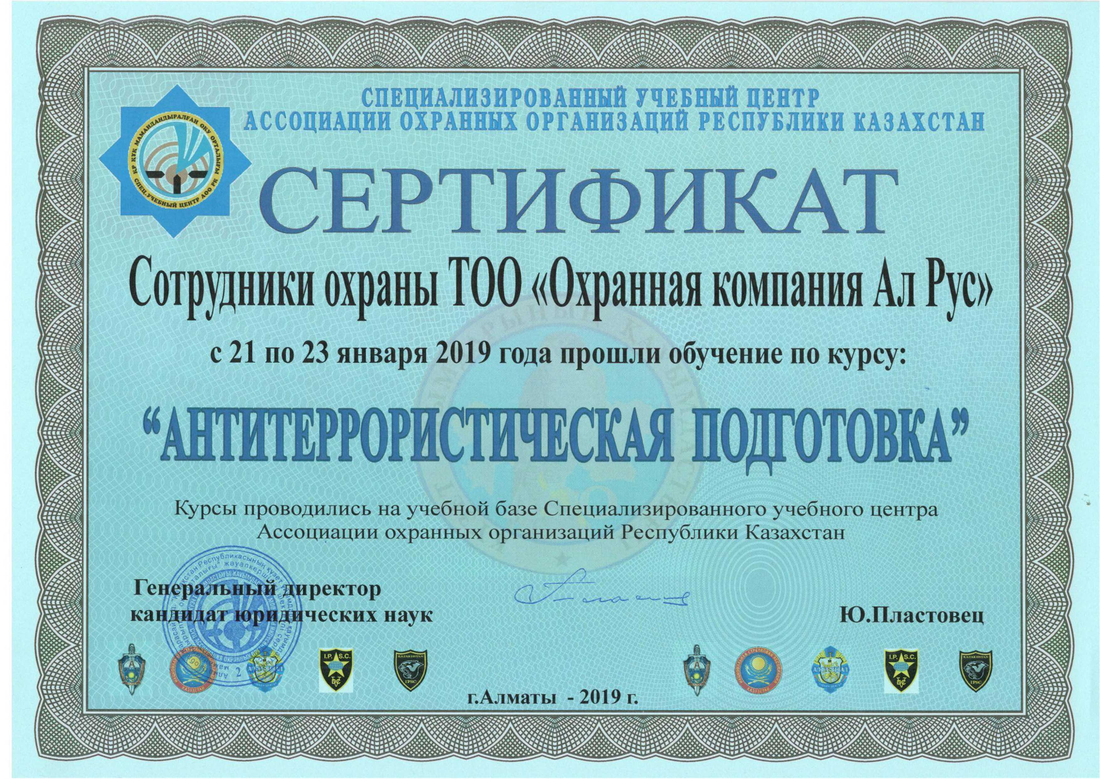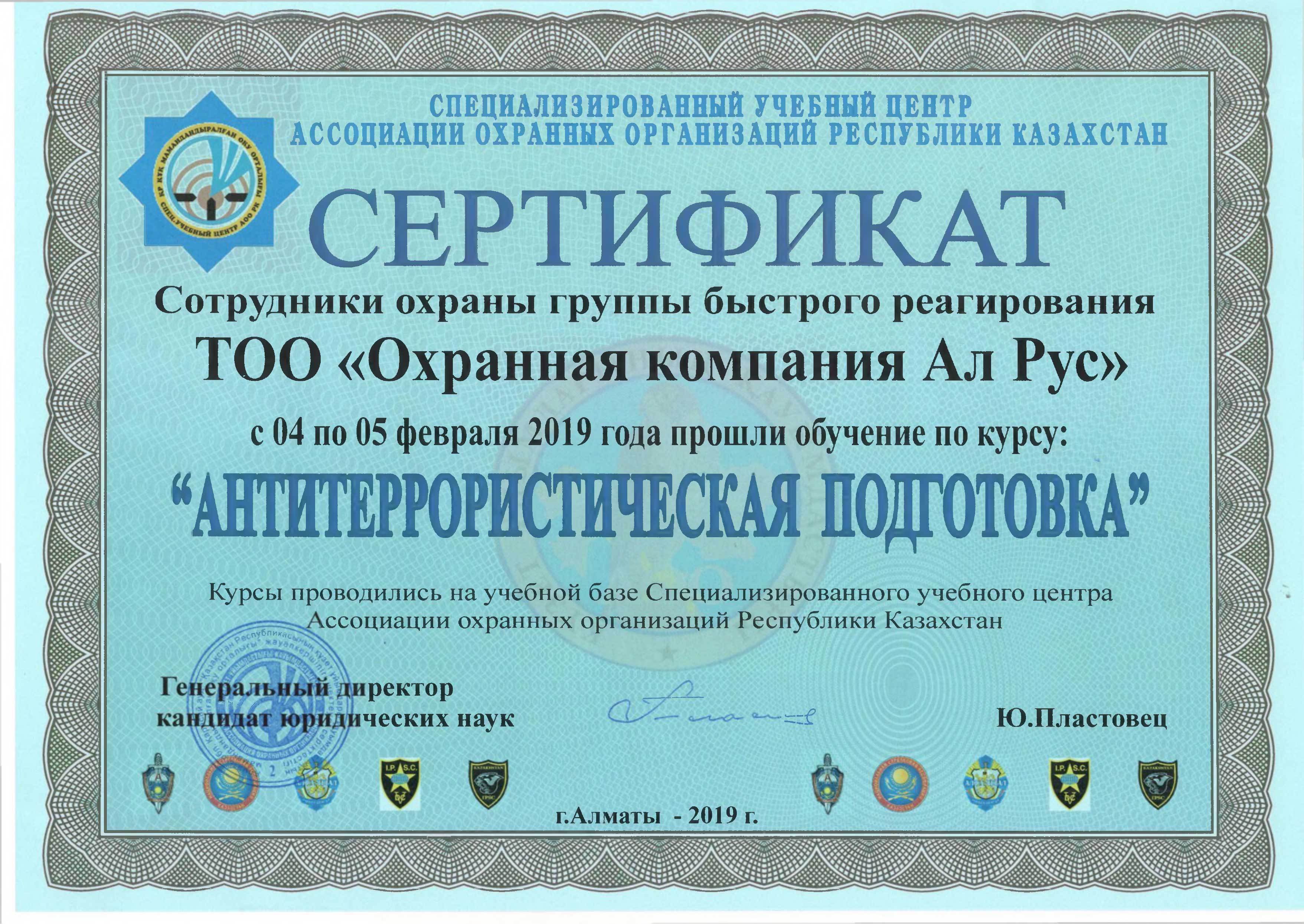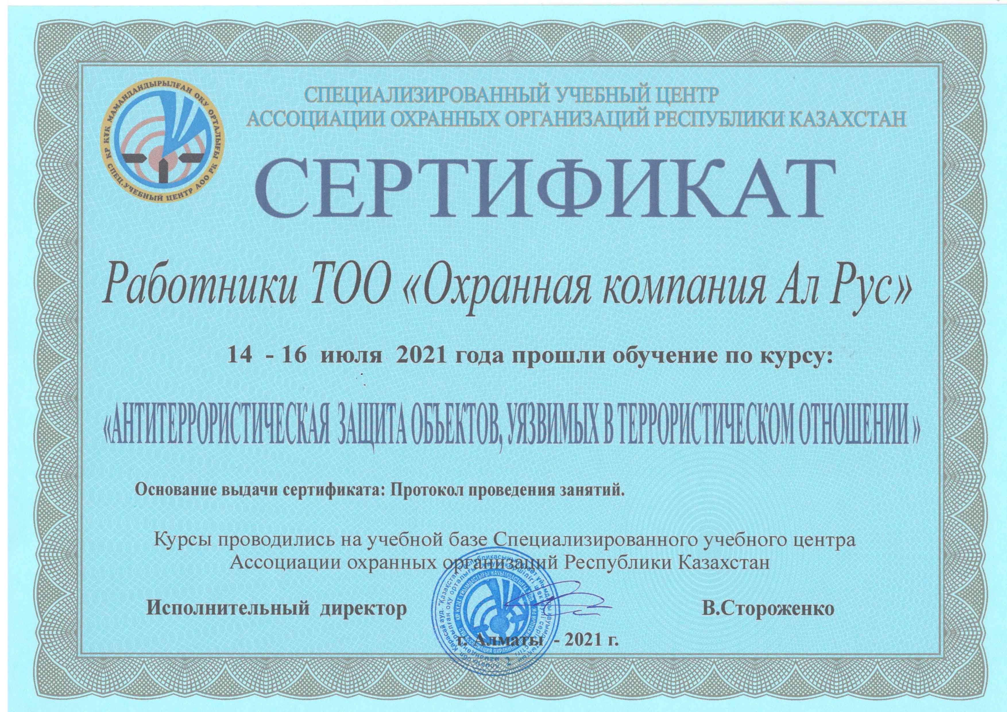 Сертификат "Антитеррористическая подготовка"