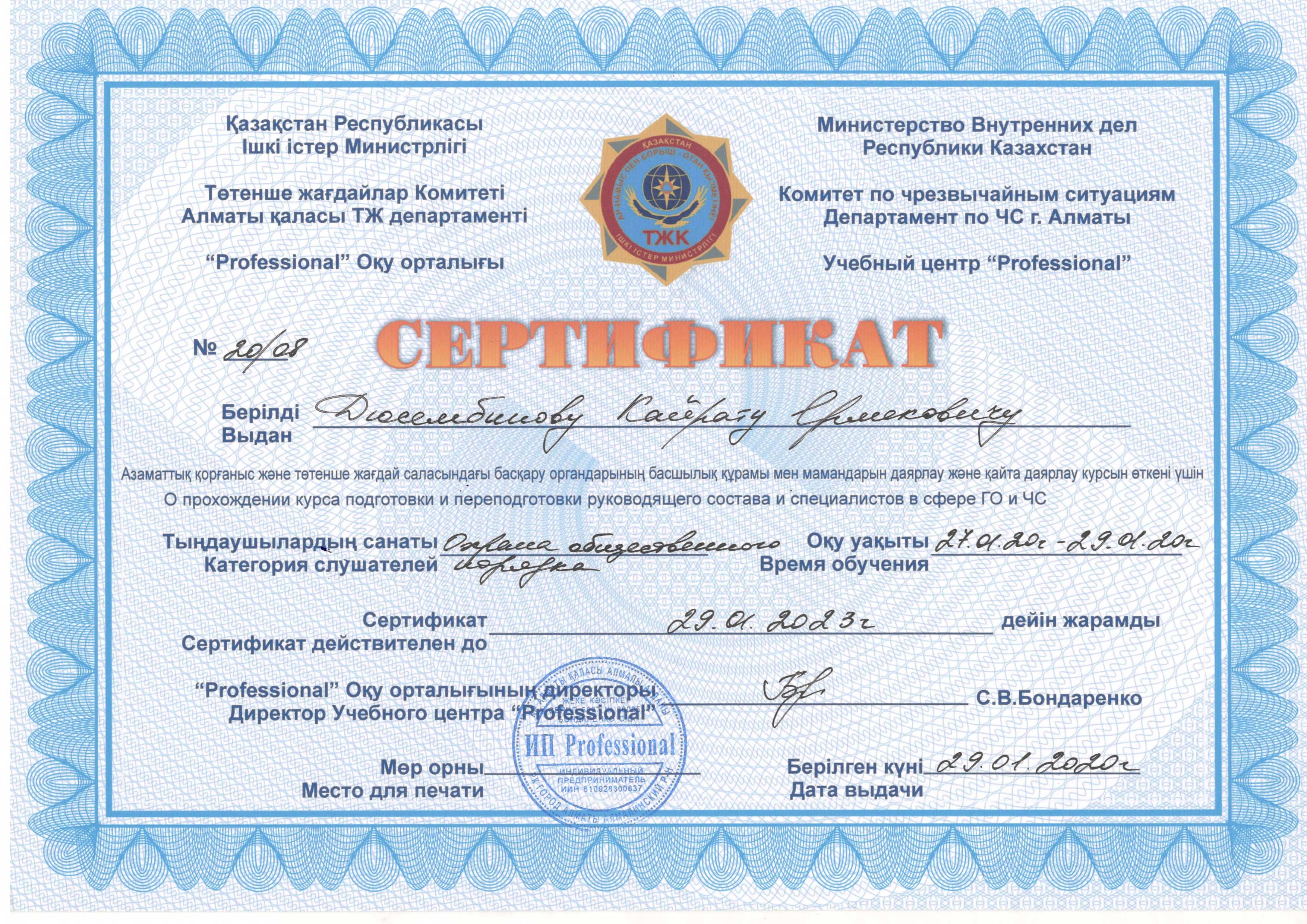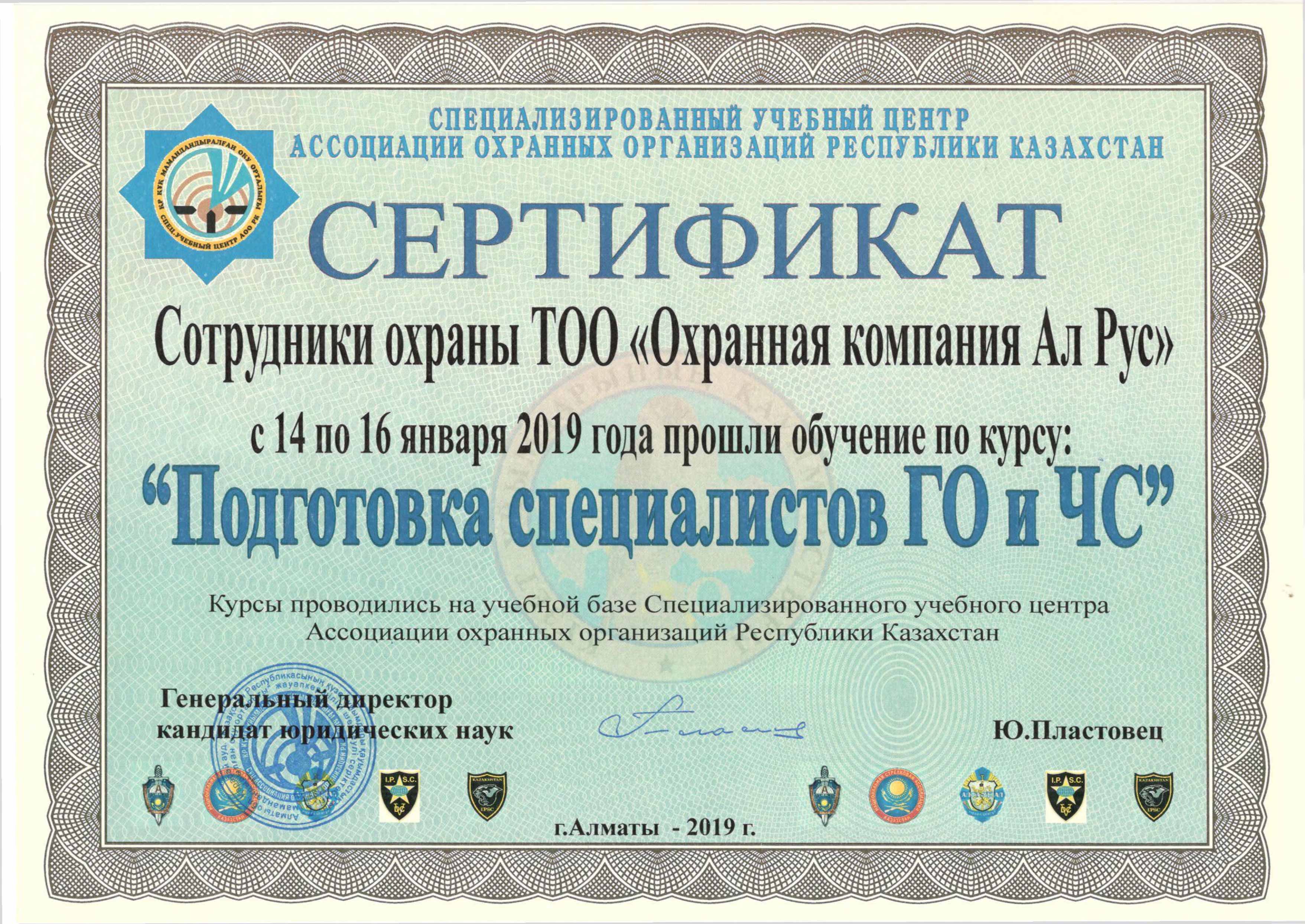 Сертификат "Подготовка специалистов ГО и ЧС"