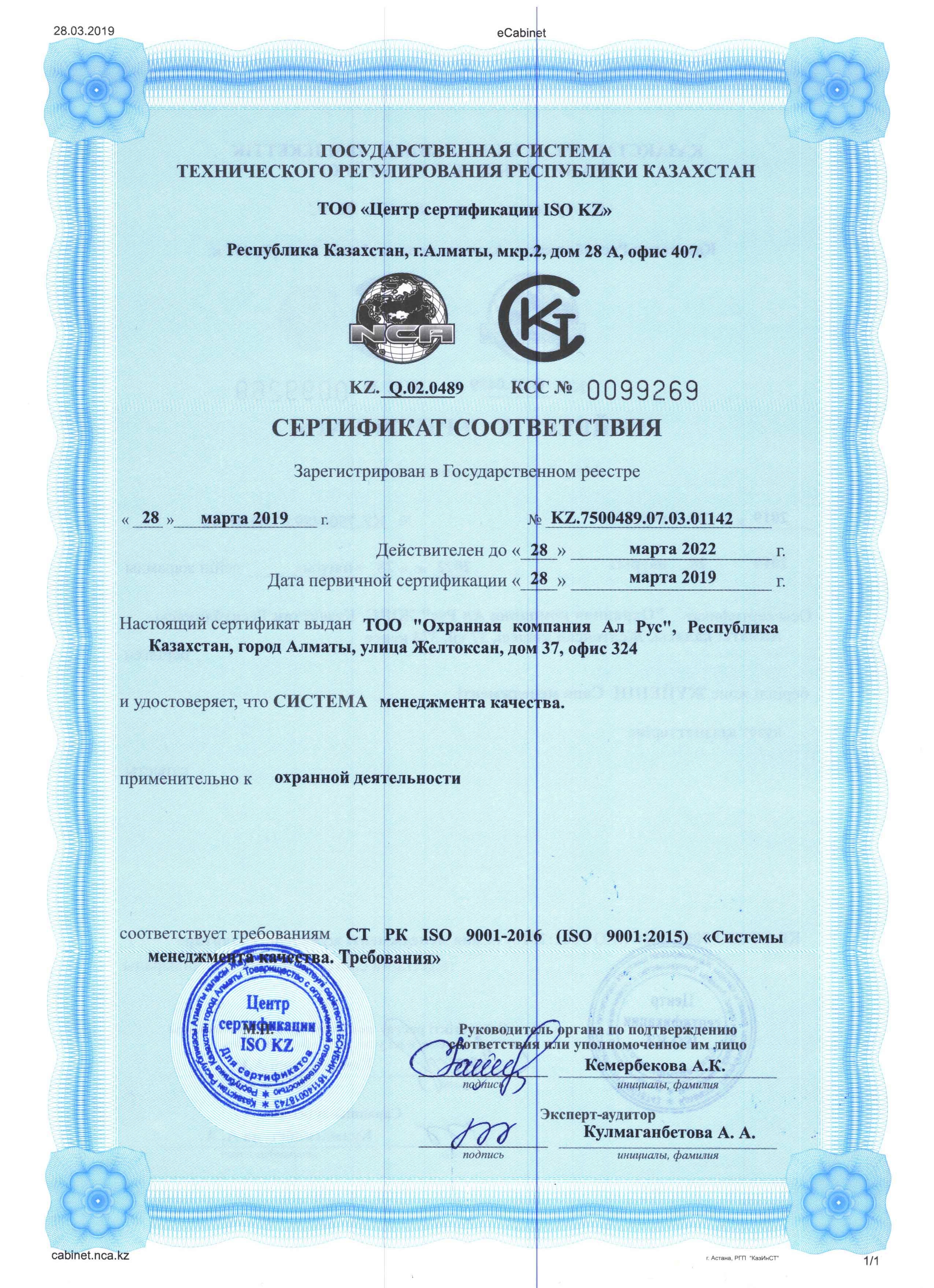 Сертификат соответствия "Система менеджмента качества"