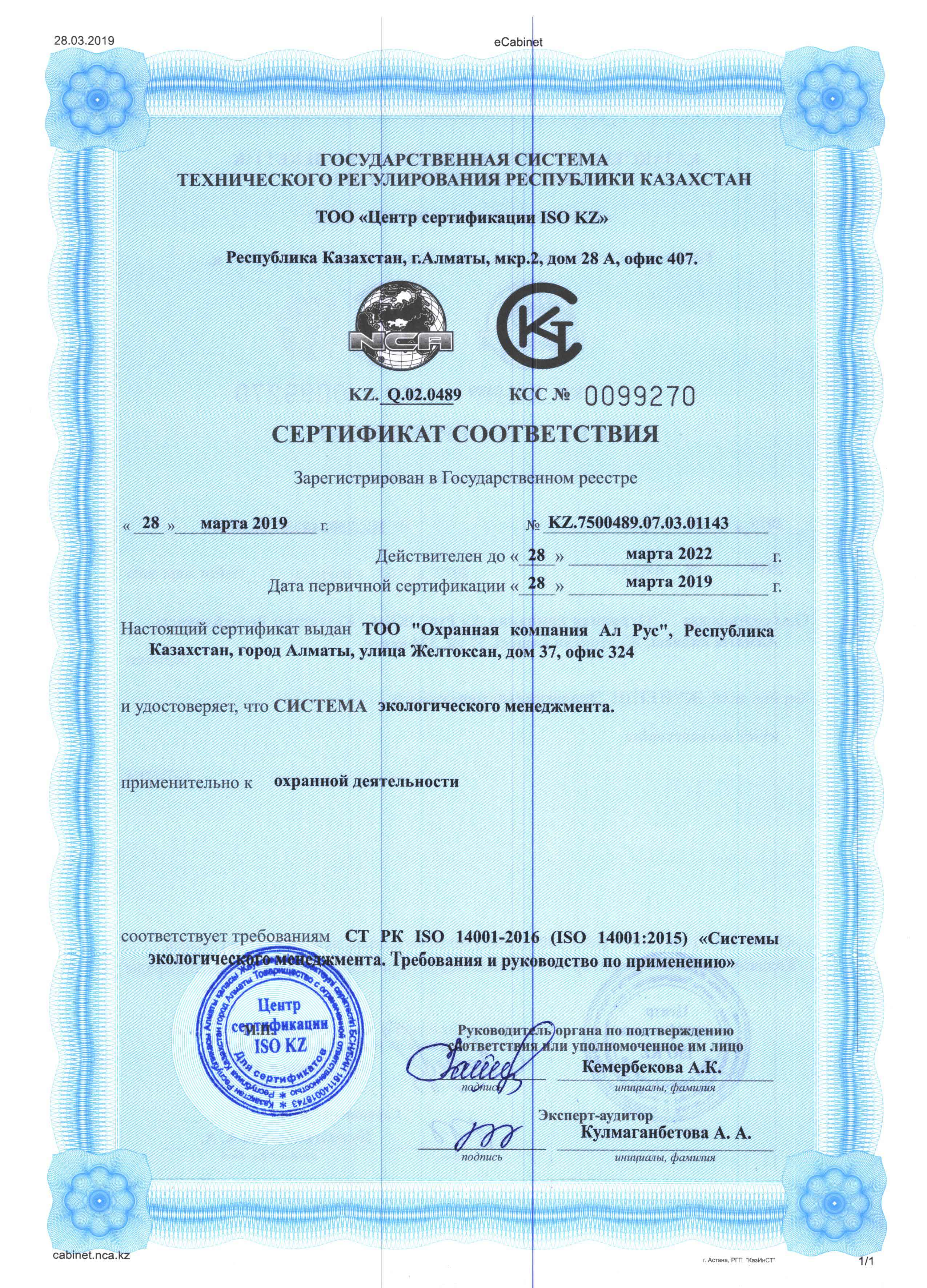 Сертификат соответствия "Система экологического менеджмента"