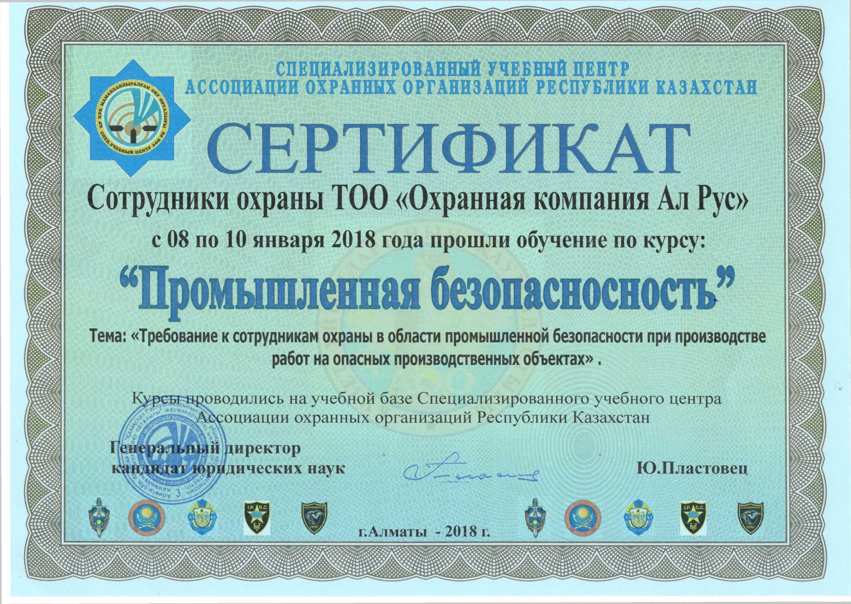 Сертификат "Промышленная безопасность"