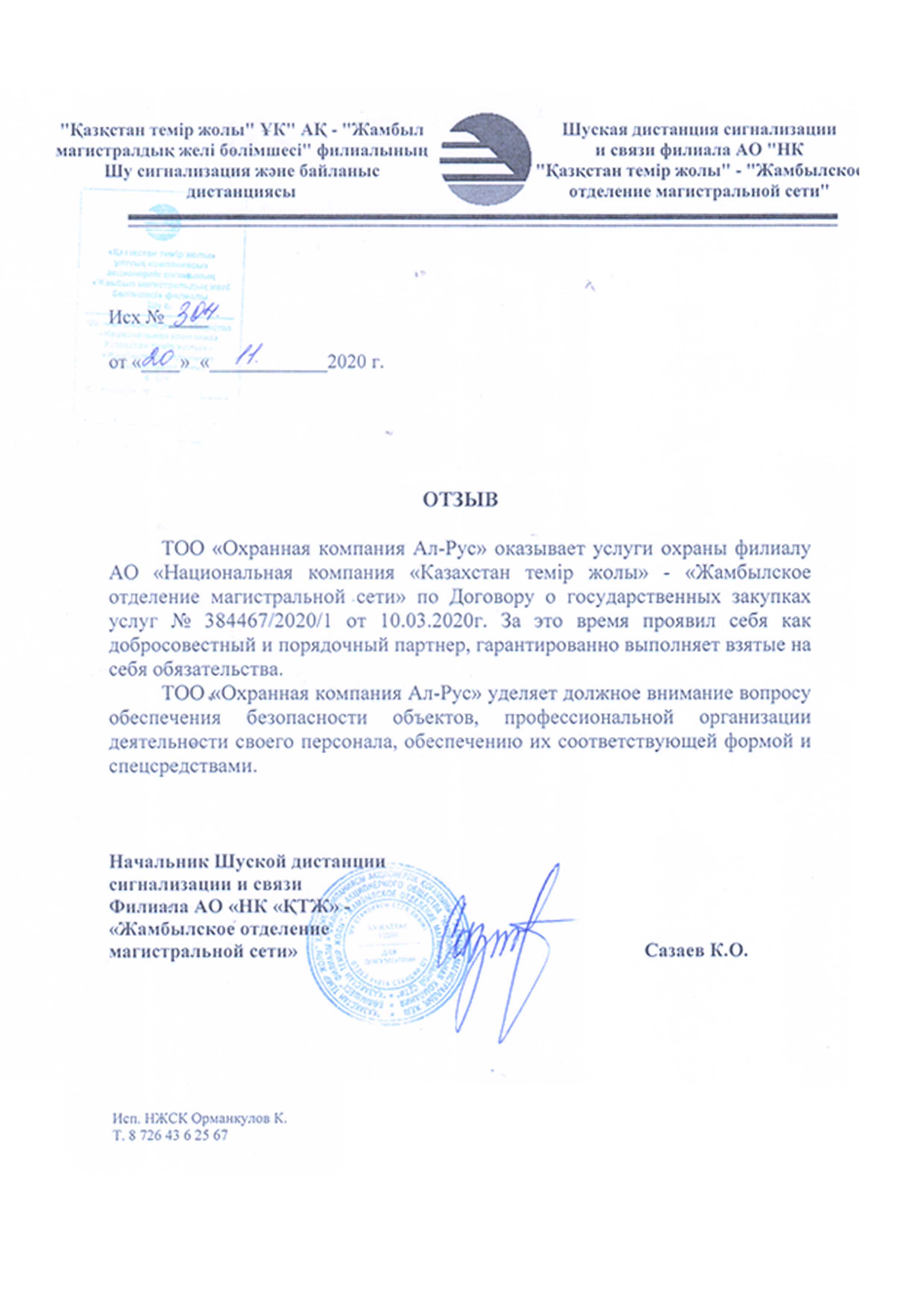 АО "НК "Қазақстан темір жолы" - "Жамбылское отделение магистральной сети"